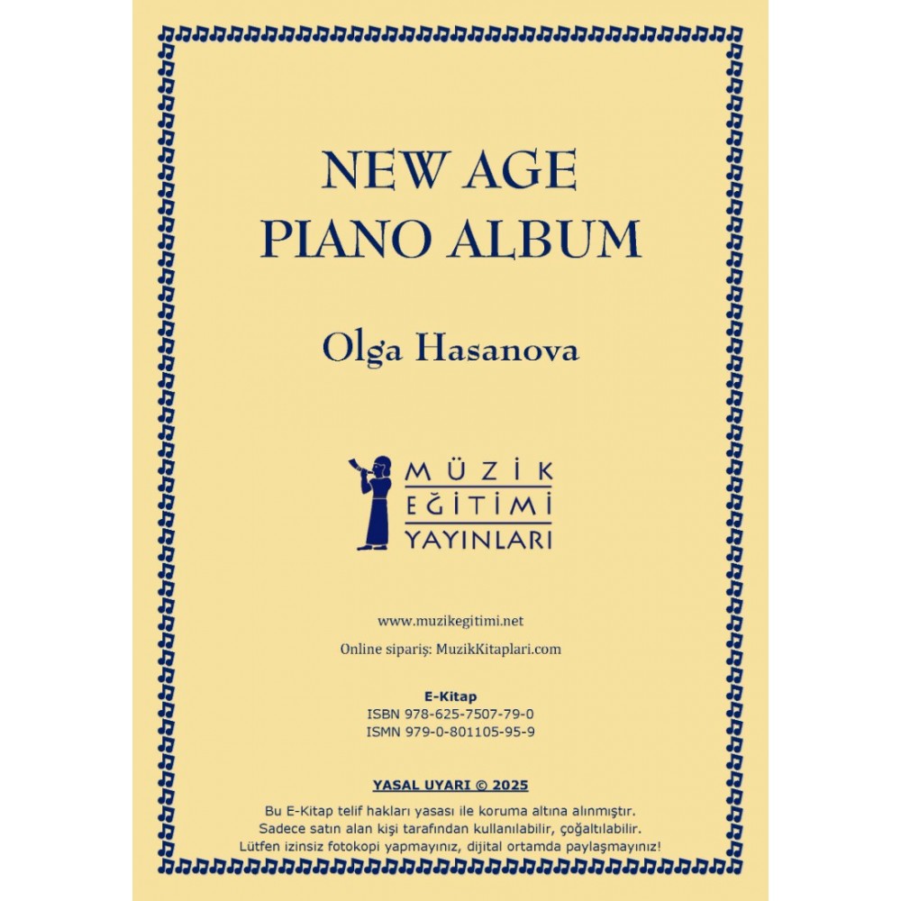 Bu E-kitapta, Olga HASANOVA tarafından hazırlanan New Age Piano Albüm kitabında yer alan eserlerin notaları yer almaktadır.